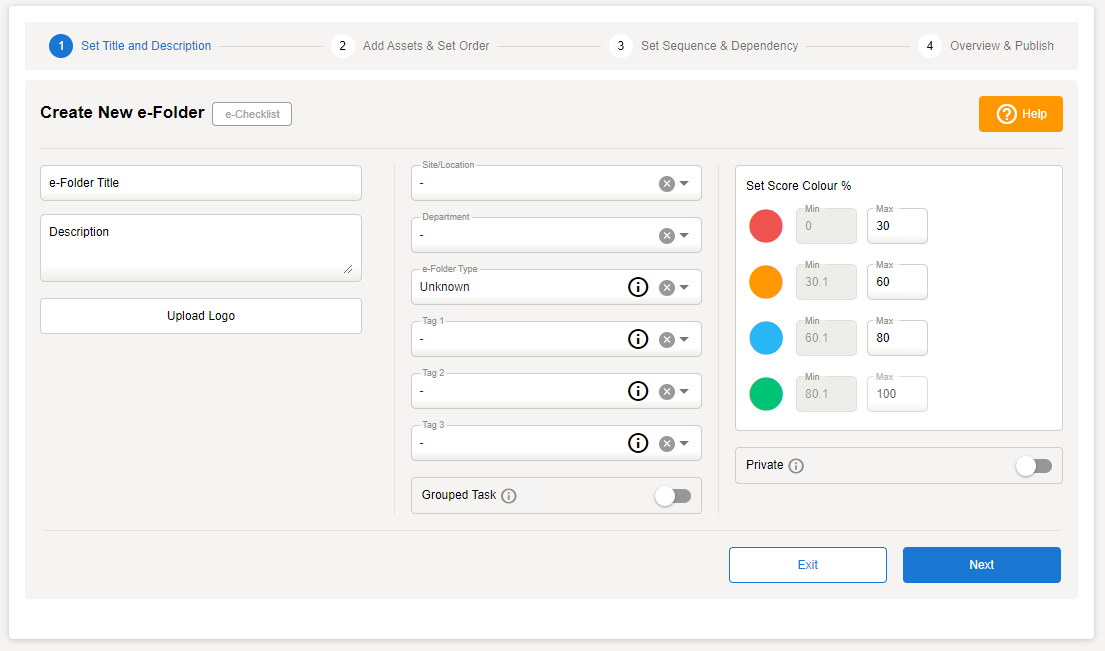 - Select an e-Folder Type - ensure you select Risk Assessment if you are making a risk assessment e-Checklist