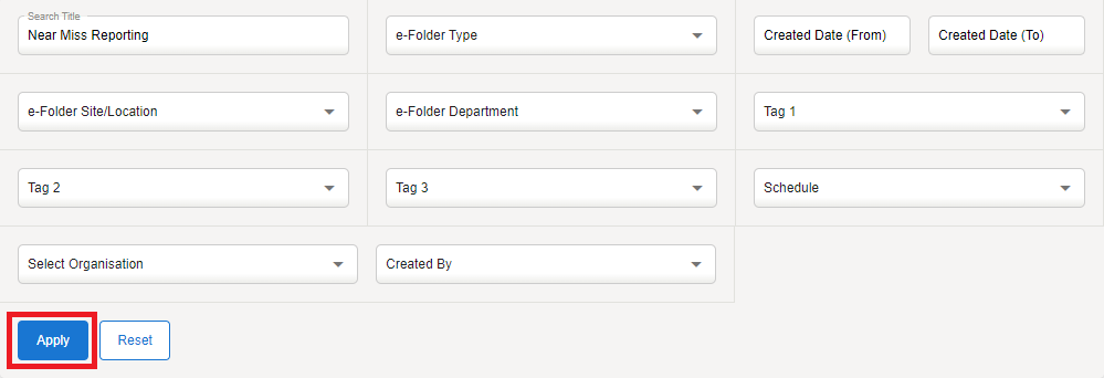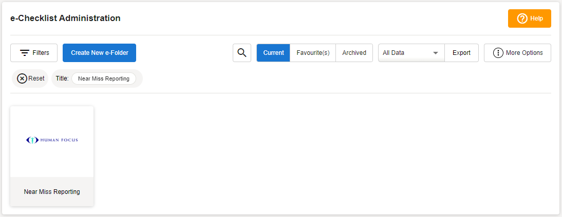 Filter by e-Folder Title 03 October 2024 14:31 Updated Go to e-Checklists > Administration > Click on Filters Select Search Title and search by e-Folder Title Click Apply