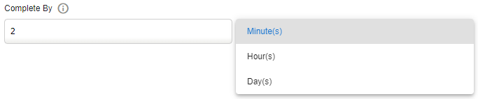 Select the Completed By time frame. Type a number then select Minutes, Hours or Days