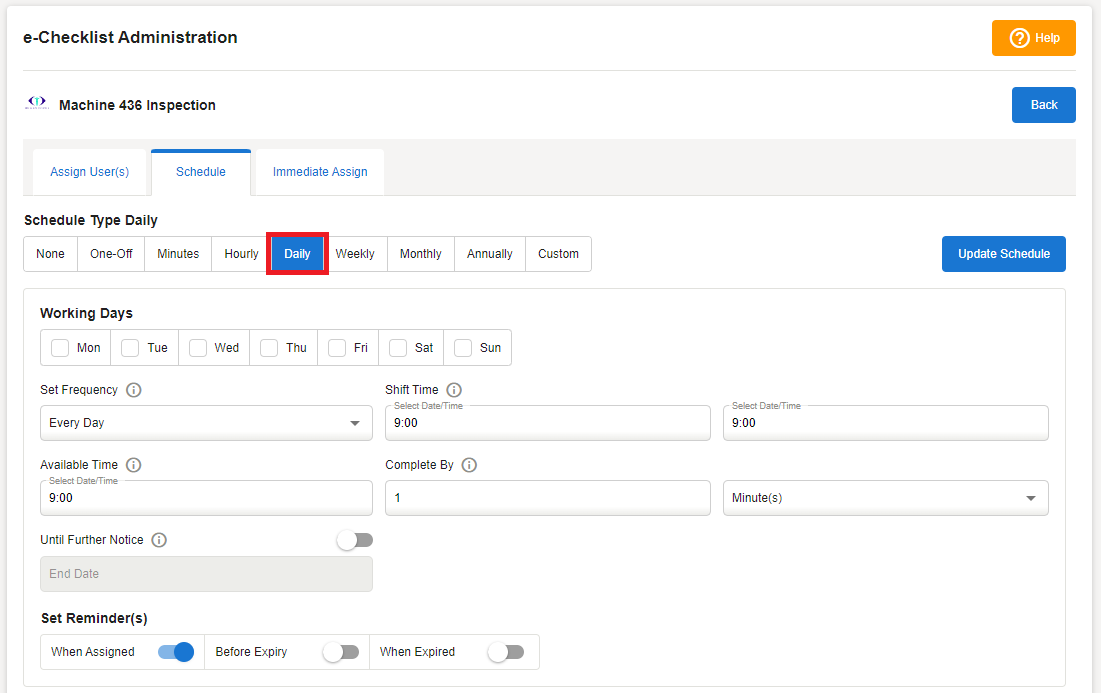 Select Schedule - Daily