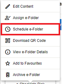 By scheduling your e-Folder you can ask the user to complete the same e-Checklists regularly to ensure necessary checks are completed within your chosen time frame.