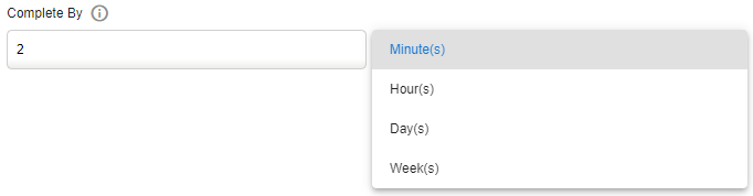 Select the Completed By time frame. Type a number then select Minutes, Hours, Days or Weeks