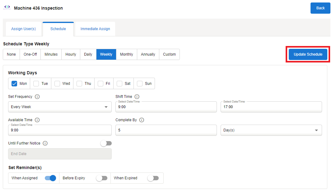 Select Update Schedule to save changes