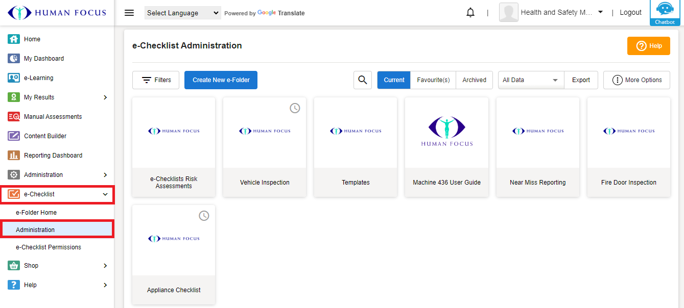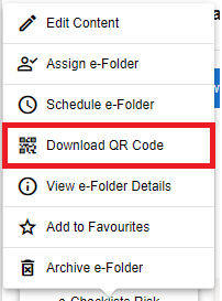 Each QR code can be downloaded and printed to attach to machinery or other useful places. Scan the QR code to access the e-Folder and the e-Checklists within it.