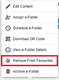 Click on the e-Folder and click Remove From Favourites