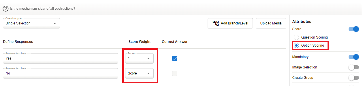 Option Scoring gives the ability to choose the Score Weight of each answer