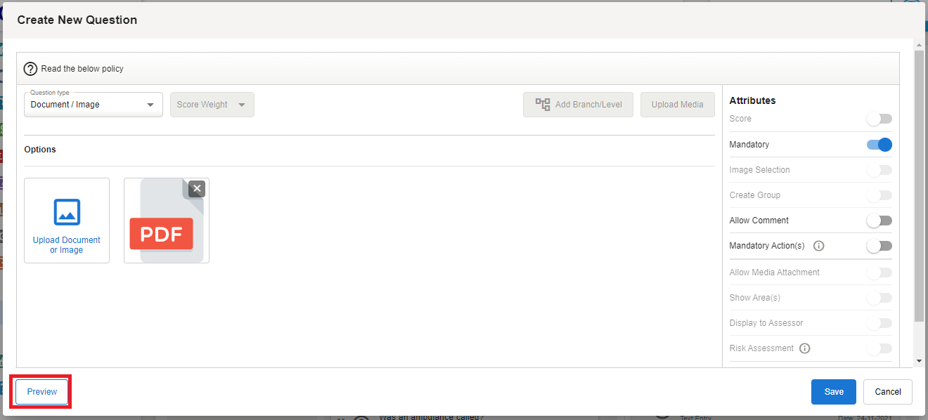 To create a Document/Image question type: