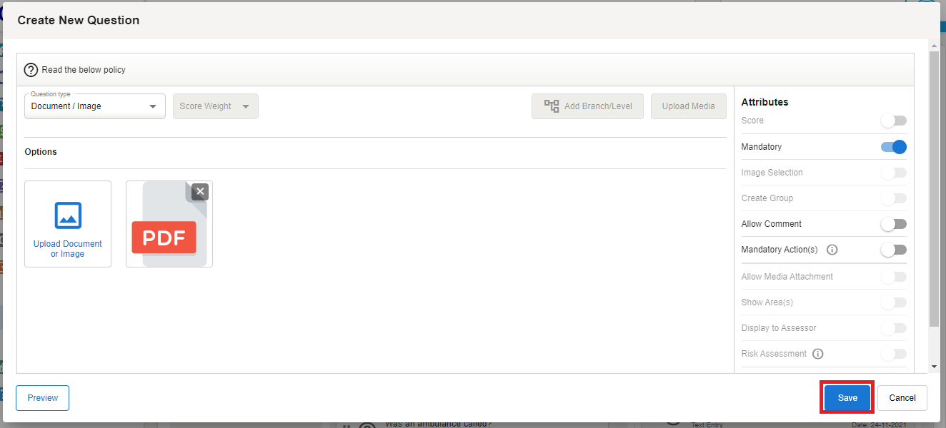 Click Save to save and create your question