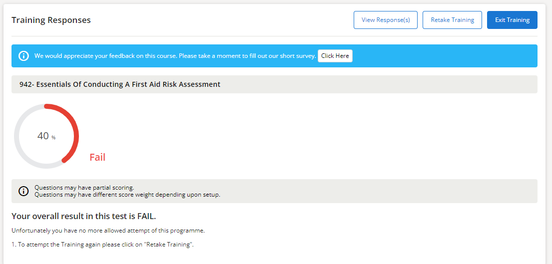 Please note - if you select Retake Training, the training will start again from the beginning and wipe your progress.