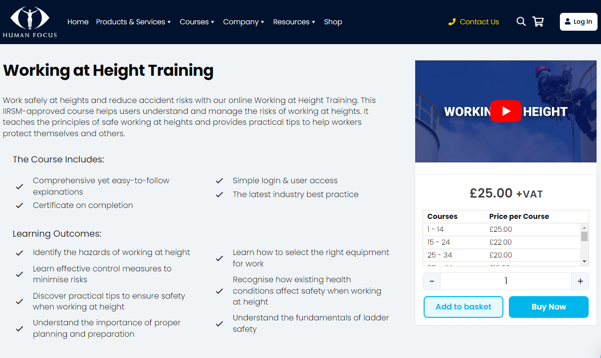 For full details of all our courses, go to https://humanfocus.co.uk/e-learning/courses/