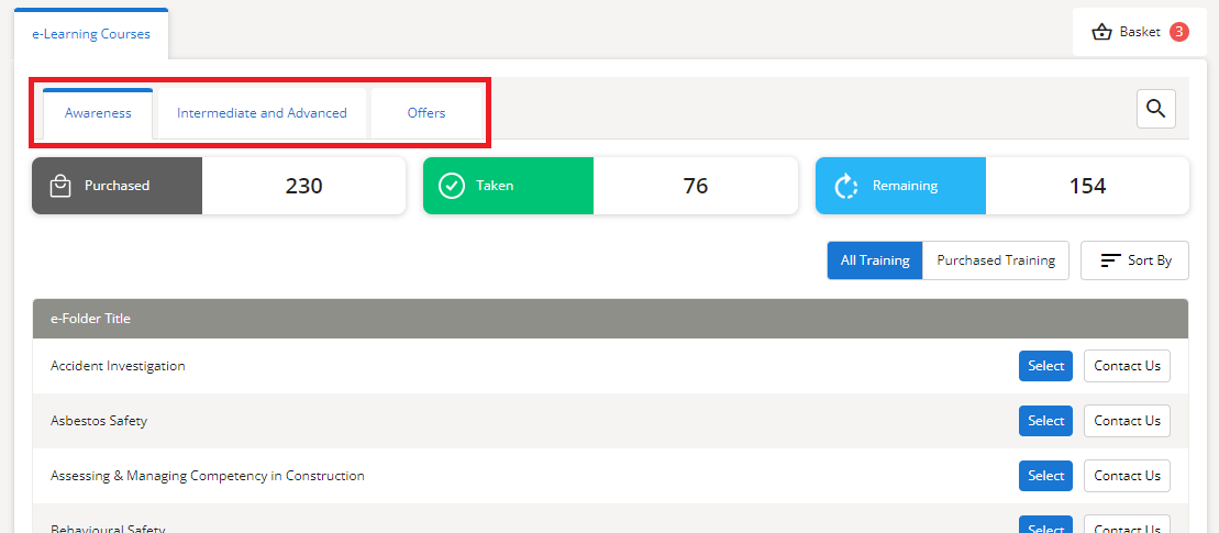 Here you will be able to see our Awareness Courses, Intermediate and Advanced Courses and our current Offers.