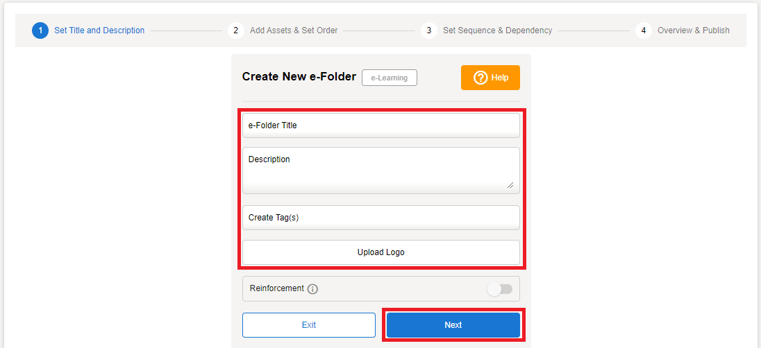- Type an e-Folder Title. An e-Folder is a subject or a way to file your training courses