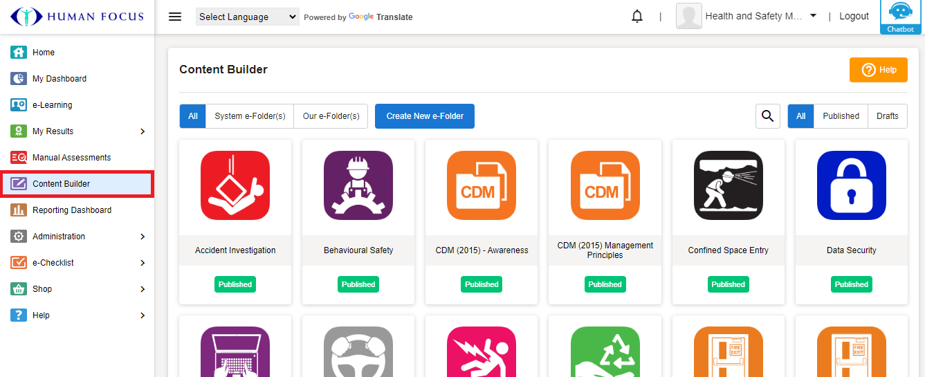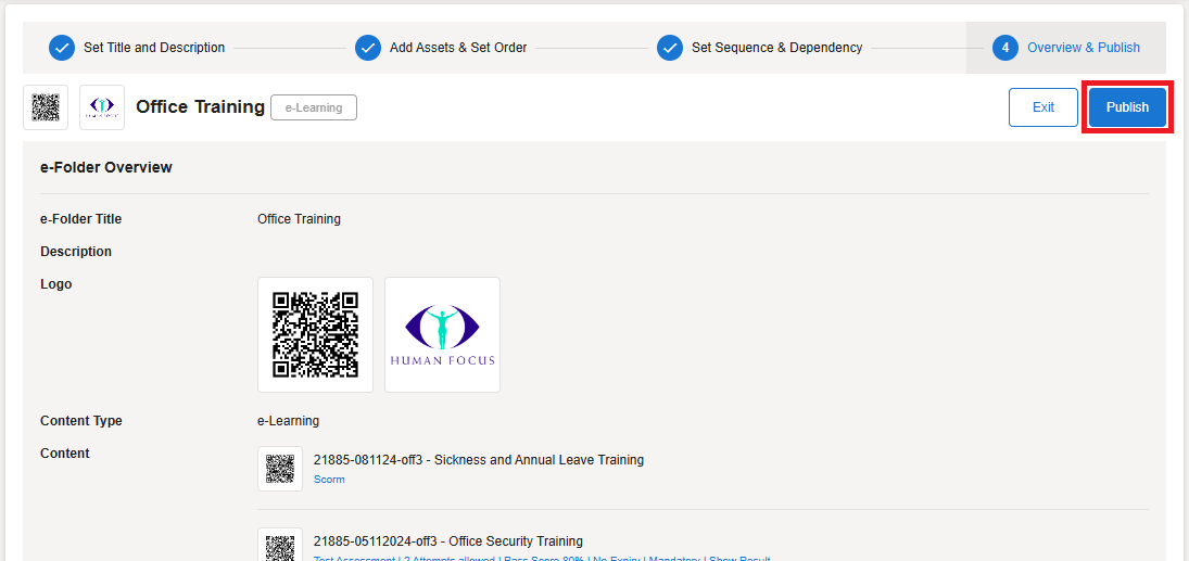 - Upload a logo for the e-Folder or leave blank to use our Human Focus Logo.