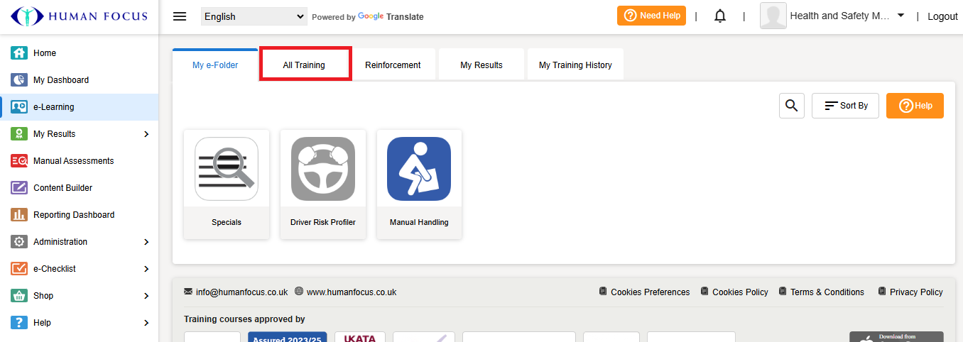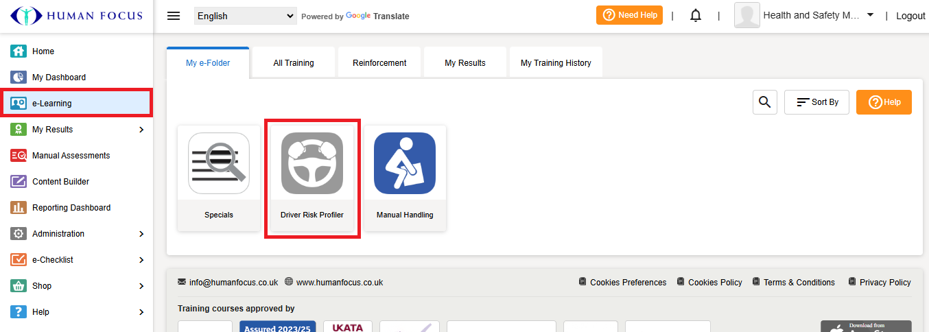 Go to e-Learning and select the e-Folder