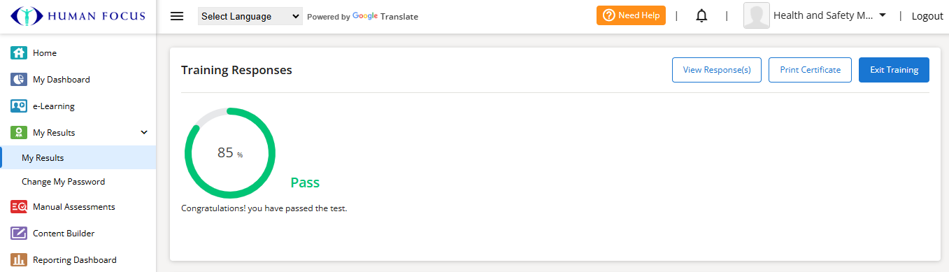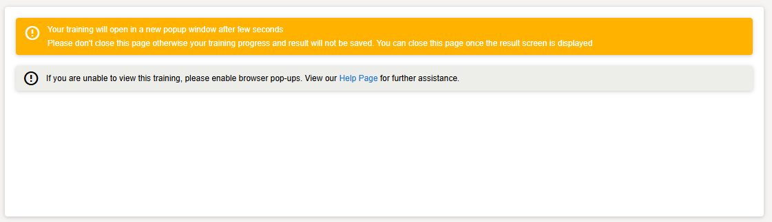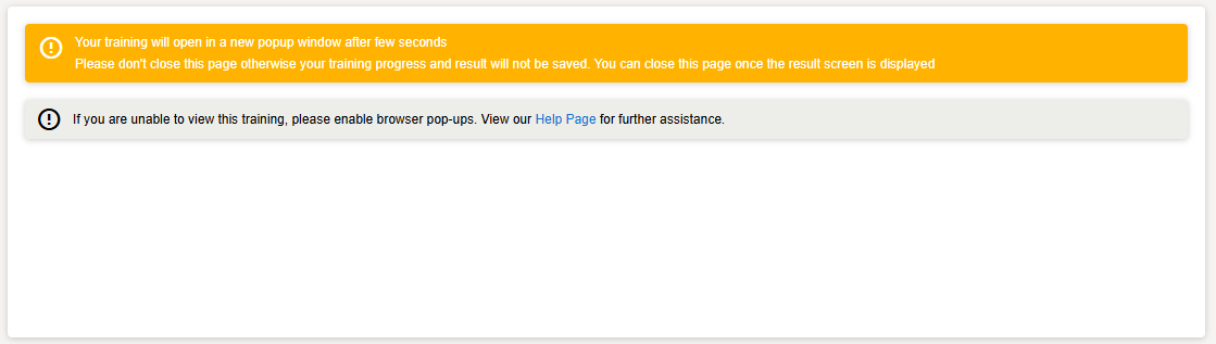 The following page will show. Keep this open until the end of the course, and the results show on this page.