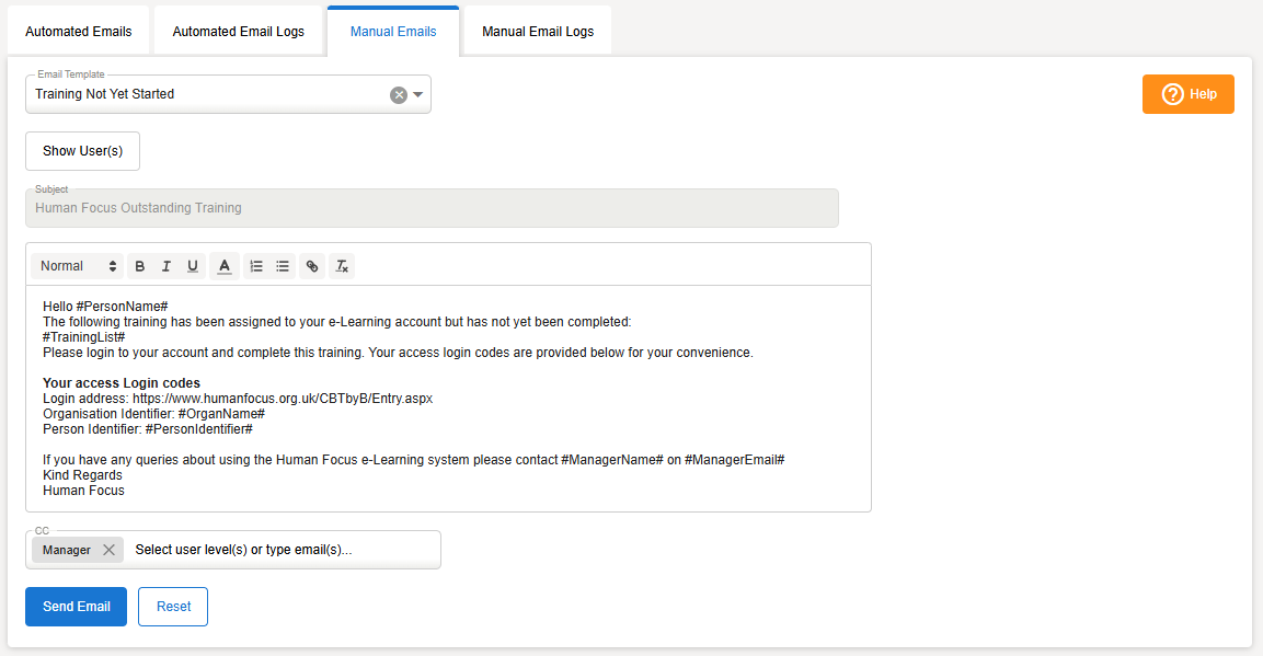 To Edit this email, please go to Automated Emails, find the Human Focus Outstanding Training and edit the template there. Click here to view the full instructions.