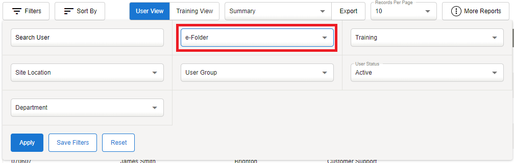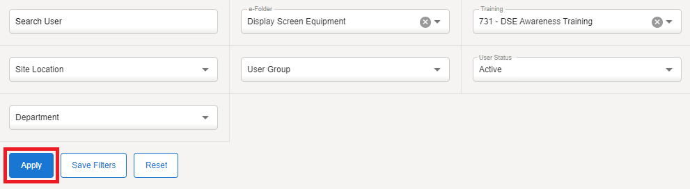 Go to Reporting Dashboard > User Training Results > Filters