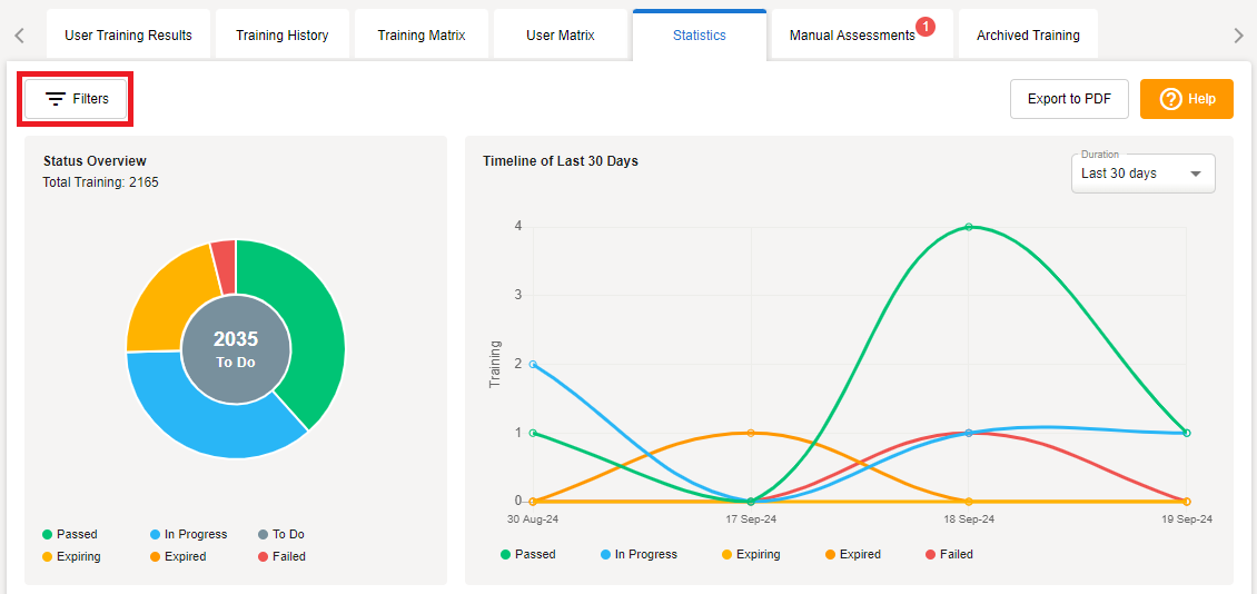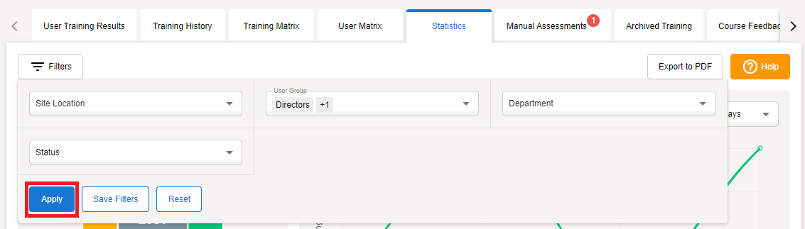Click Apply to filter your Statistics