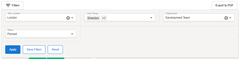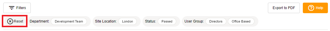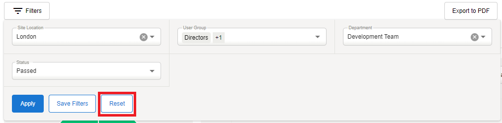 Click Reset next to your selected filters