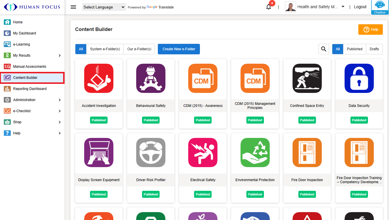 Click on System e-Folder(s) to view Human Focus e-Folders that are on your account