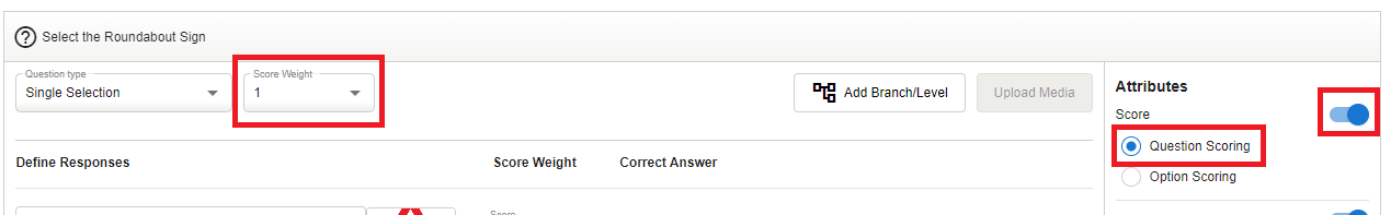 Option Scoring gives the ability to choose the Score Weight of each answer
