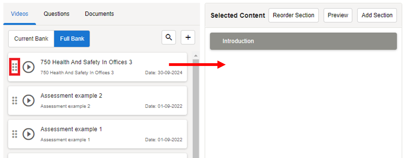 Drag the video from your Video Section to the Course Content