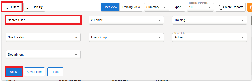 Click on Reporting Dashboard > User Training Results