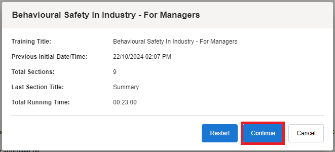 Select the course and click Continue