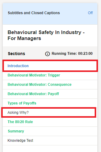 All sections, on the right hand side, need to be green to access the Knowledge Test. Complete any sections that are not green. You may need to watch a video and answer some questions to complete a section.