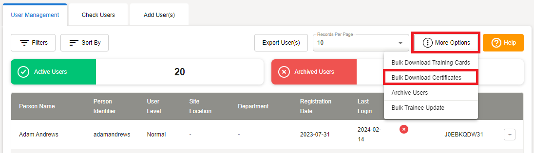 Download all certificates for all users from our system directly onto your device through our Bulk Download Tool.
