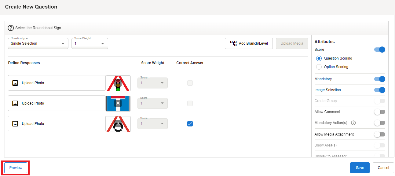 Option Scoring gives the ability to choose the Score Weight of each answer