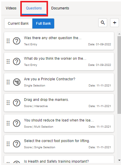 Click on the Plus icon to create a new question