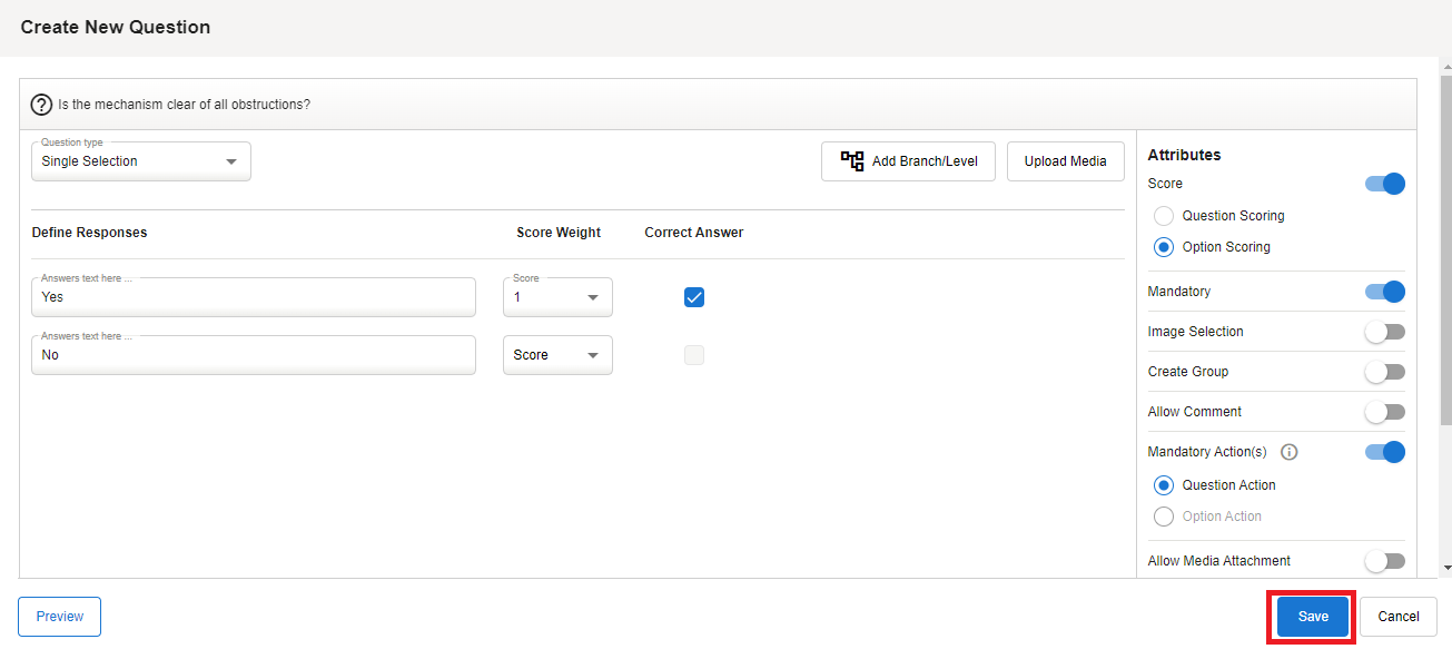 Single Selection question type