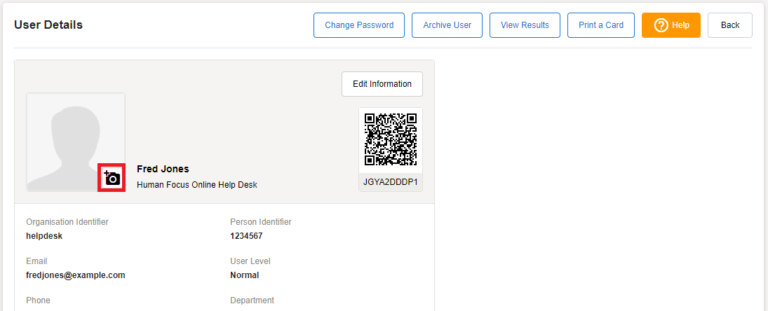 To Upload a Training Card photo for a user: