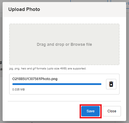 Click Save to upload the photo
