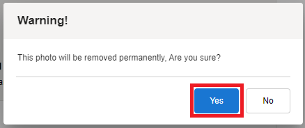 Click Yes to remove the photo. Click No to close the pop-up