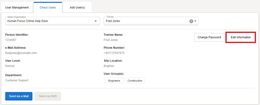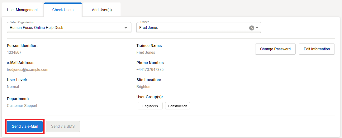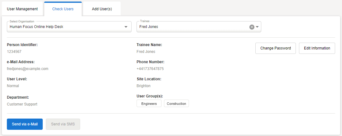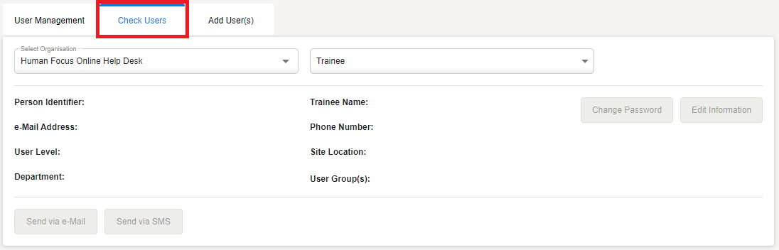 Please note - Check Users shows active users. If you are unable to locate a user, click on User Management to check archived users.