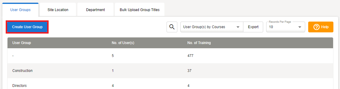 - We recommend User Groups are by job role or by individual course, but you can choose any title.