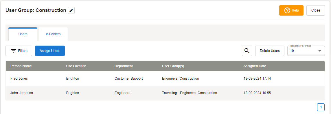 Hover over an assigned user and select the Bin icon to remove a user from a User Group