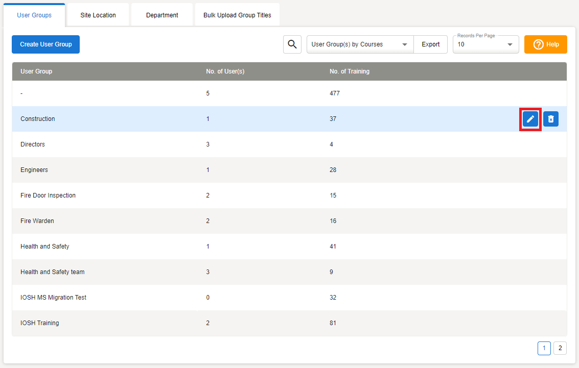 Click on the blue pencil to edit the User Group
