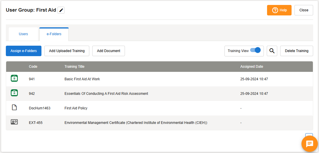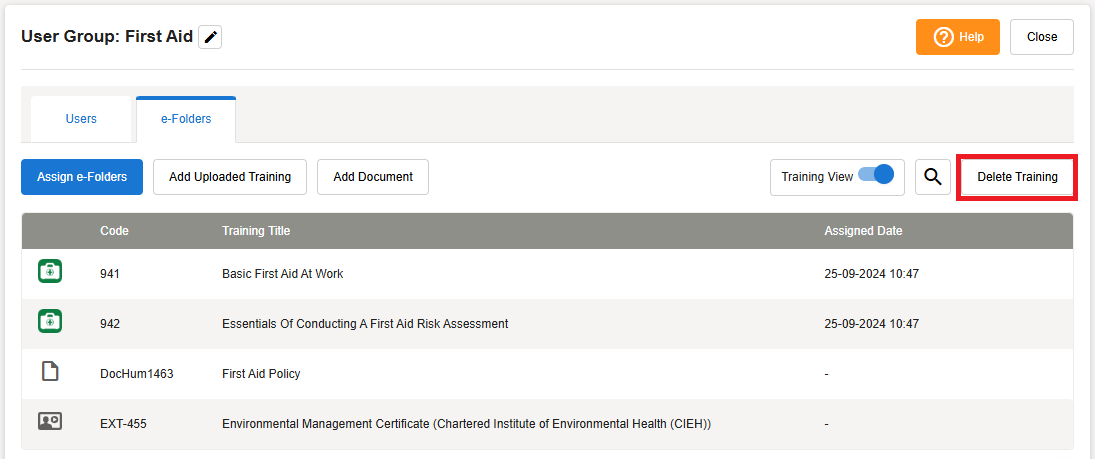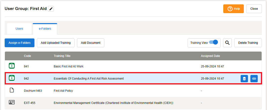 Hover over the User Group you wish to assign training to
