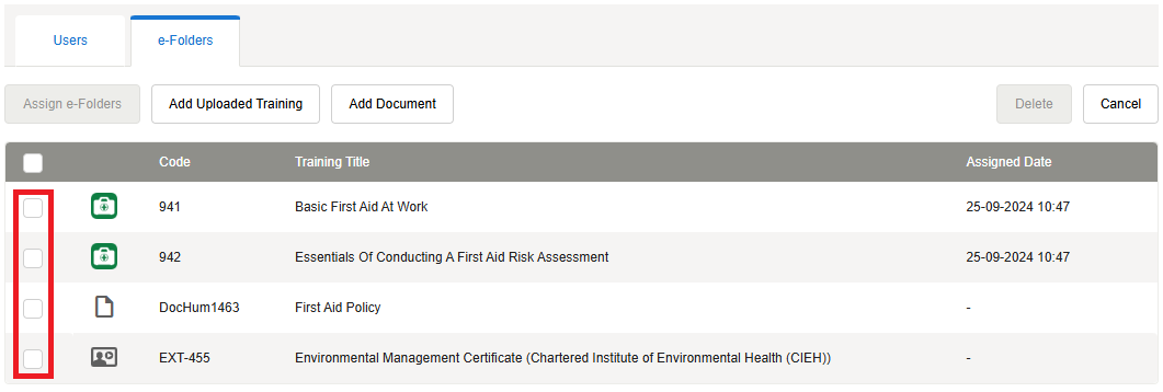 Select the courses you want to delete