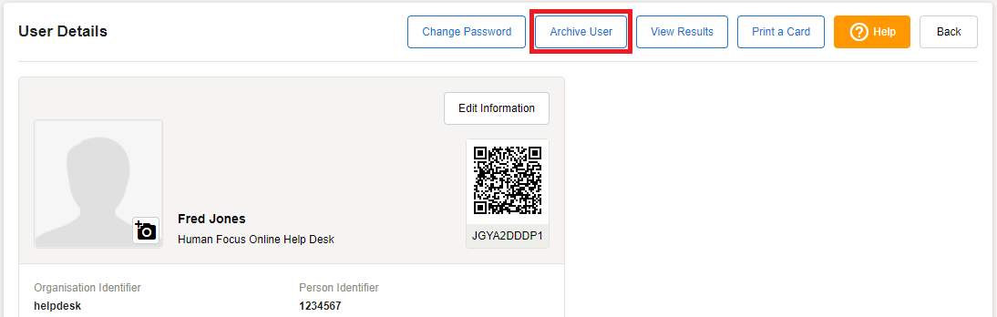 Click on the User you wish to Archive