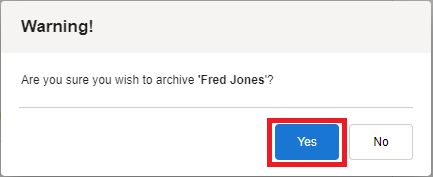 Click Yes to Archive the user. Click No to close the pop-up