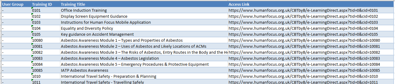 To export a report of all the courses in user groups: