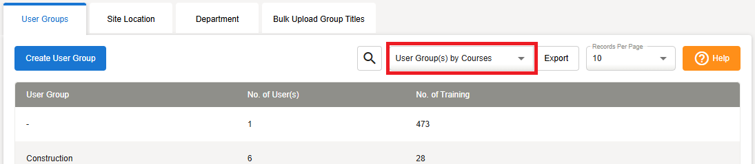 Select User Group by Courses from the drop down menu