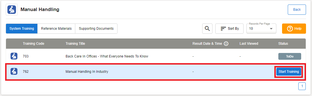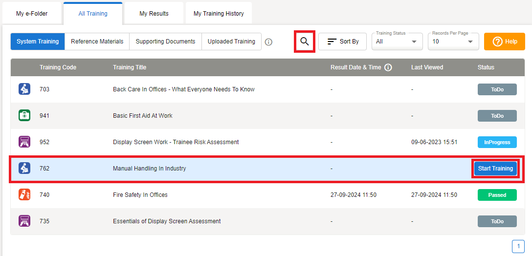 Click on All Training to view the list of courses