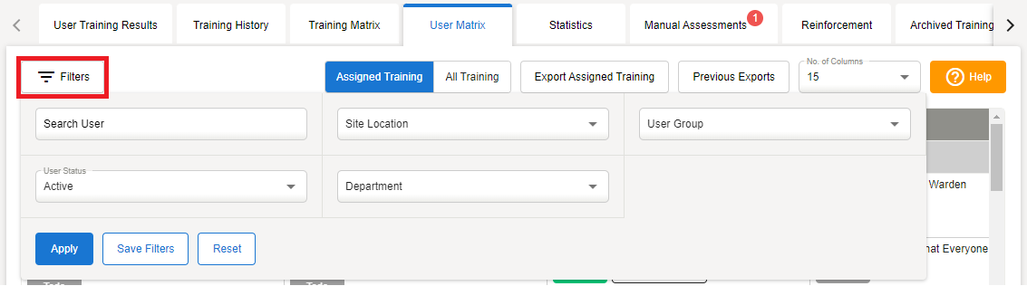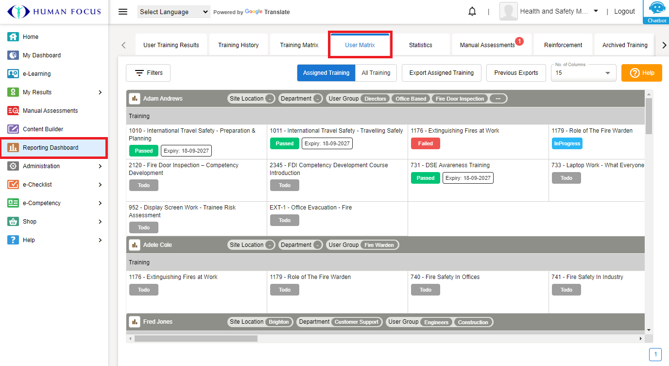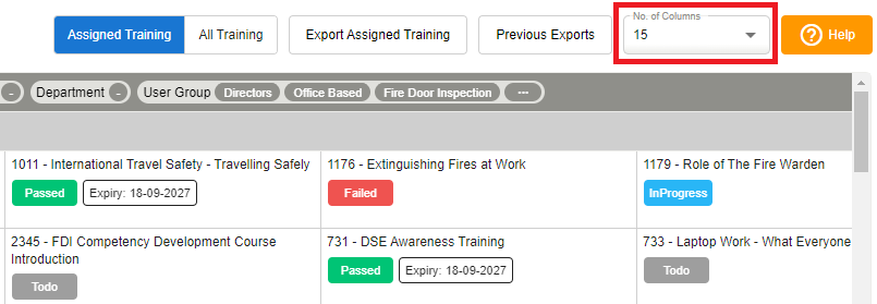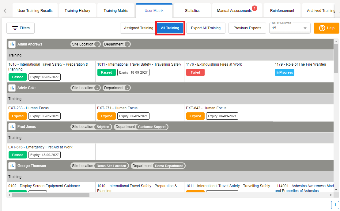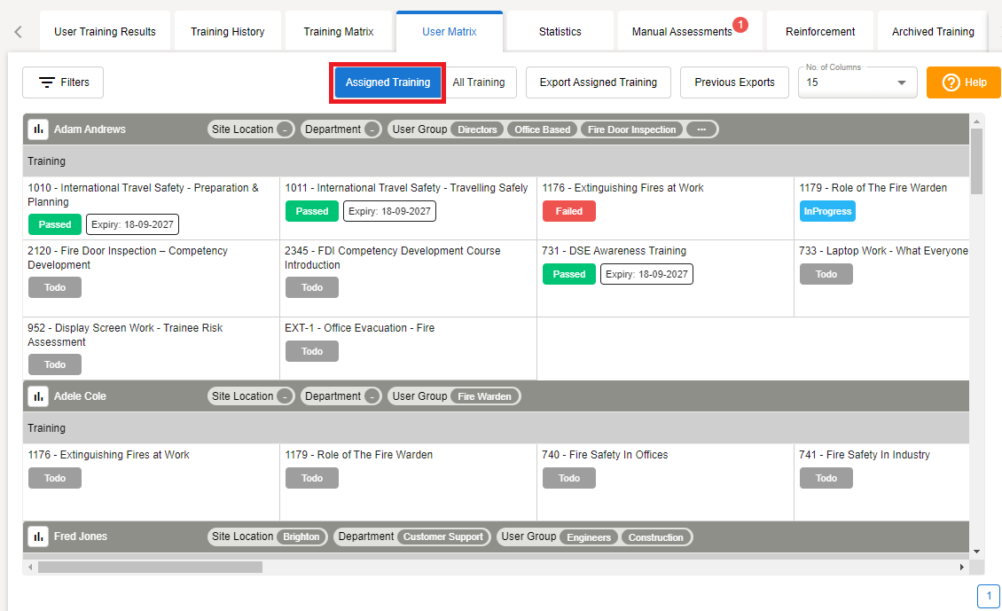 Select Assigned Training to view all training per user, as per their user group(s)