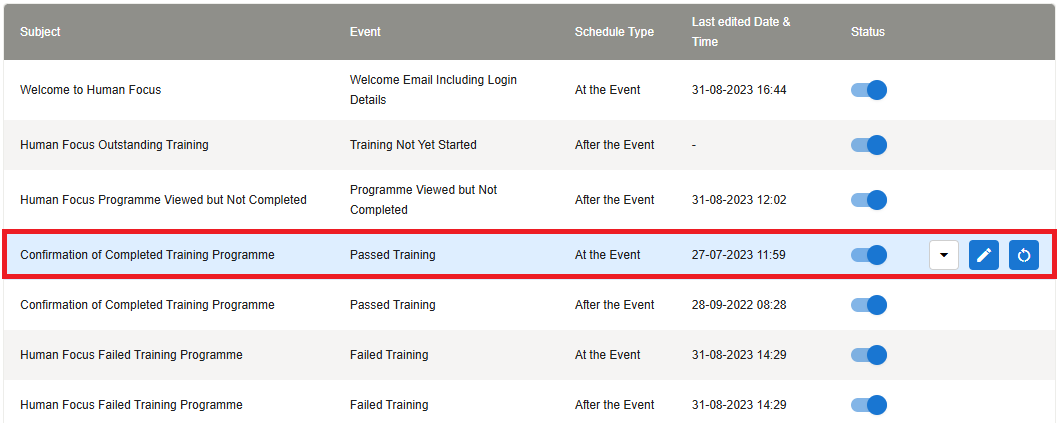 Hover over an email you wish to edit