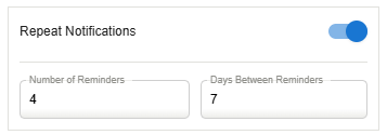 Select the number of reminders to send and the days in between the reminders